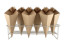 Porte-cornet à frites en acier inoxydable. Il est possible de placer jusqu'à 6 cornets dans le porte-cornet. L'avantage pour le client est qu'il a les mains libres pour payer ou passer les cornets aux autres personnes. Aussi un joli moyen de présenter les cornet avec vos produits.